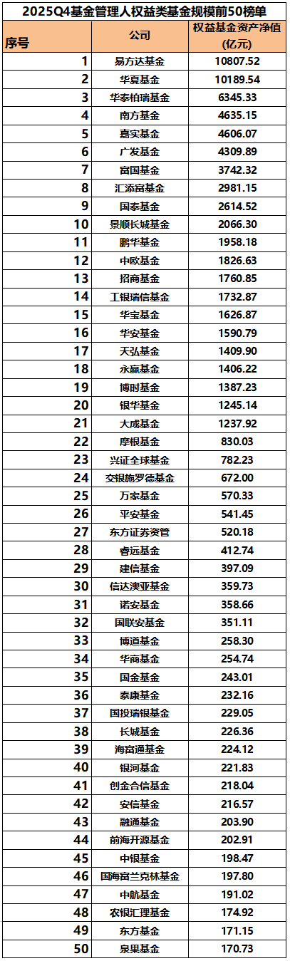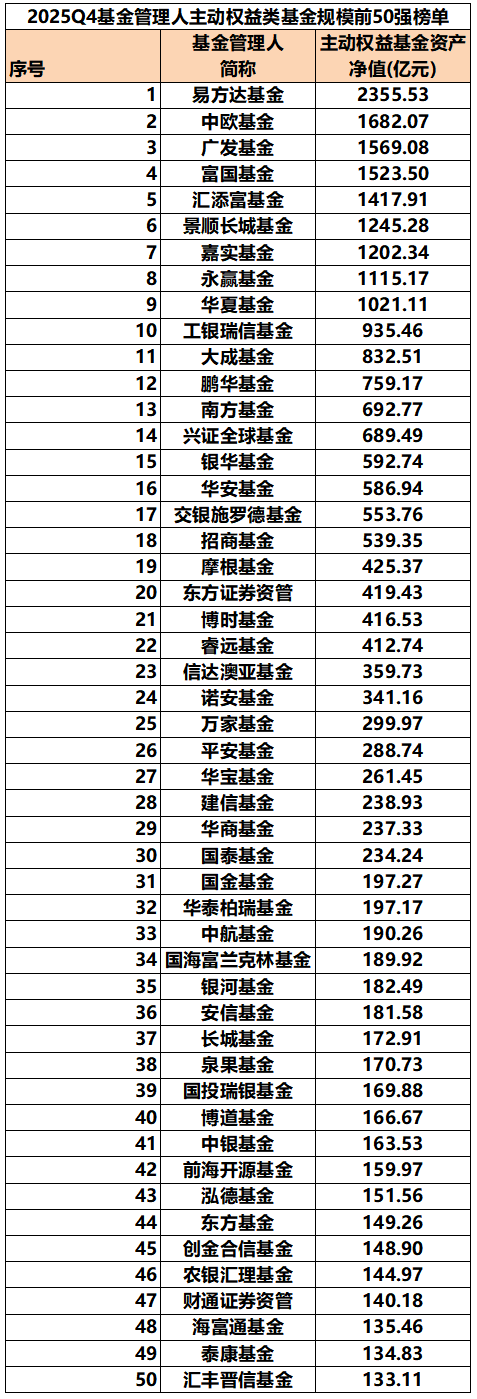 主动权益基金(含QDII)规模也是公募2025年四季报的重要看点之一。