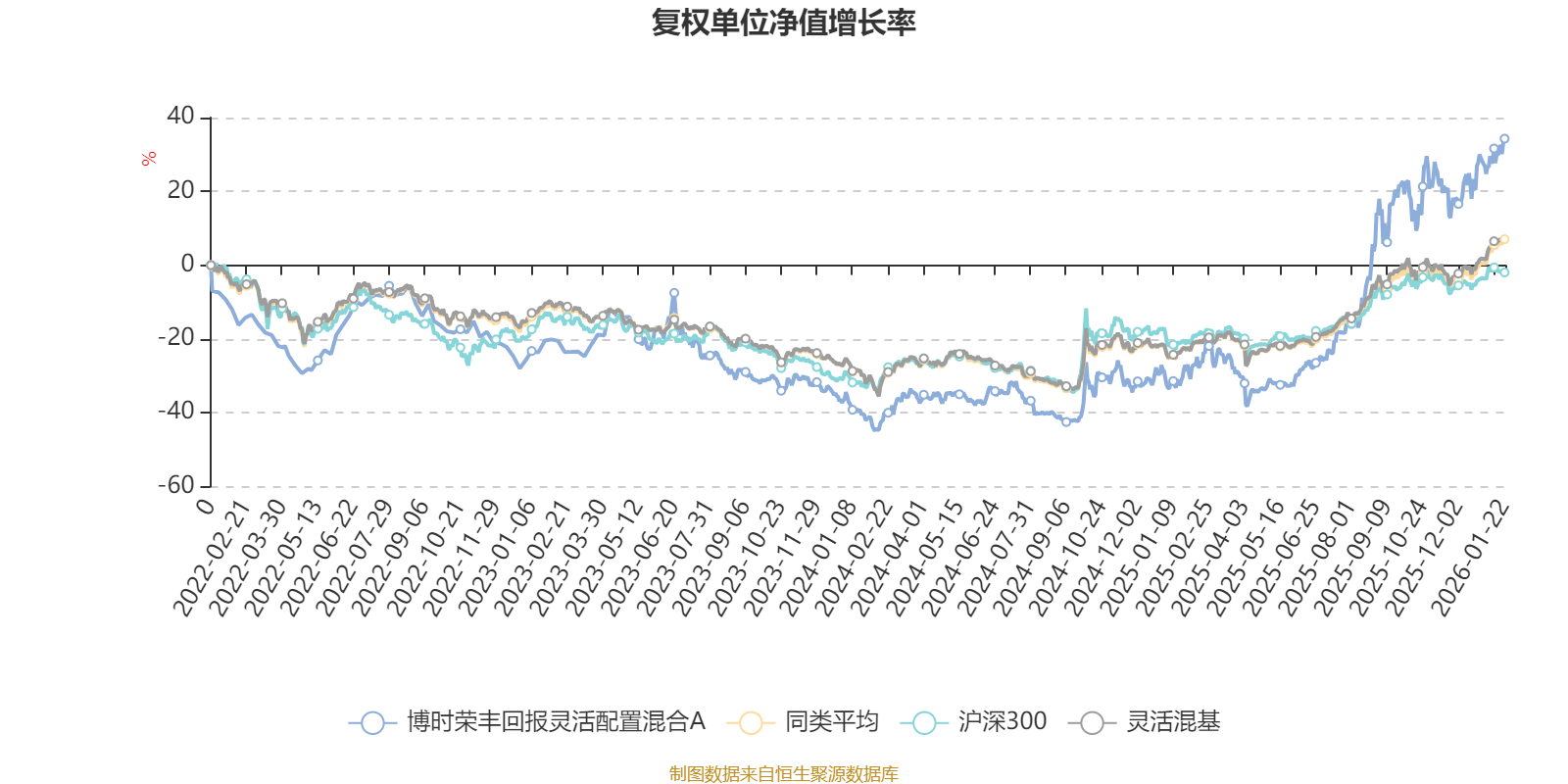 截至1月22日,博时荣丰回报灵活配置混合A近三个月复权单位净值增长率为16.87%,位于同类可比基金211/1286;近半年复权单位净值增长率为63.98%,位于同类可比基金64/1286;近一年复权单位净值增长率为84.15%,位于同类可比基金46/1286;近三年复权单位净值增长率为68.78%,位于同类可比基金87/1286。