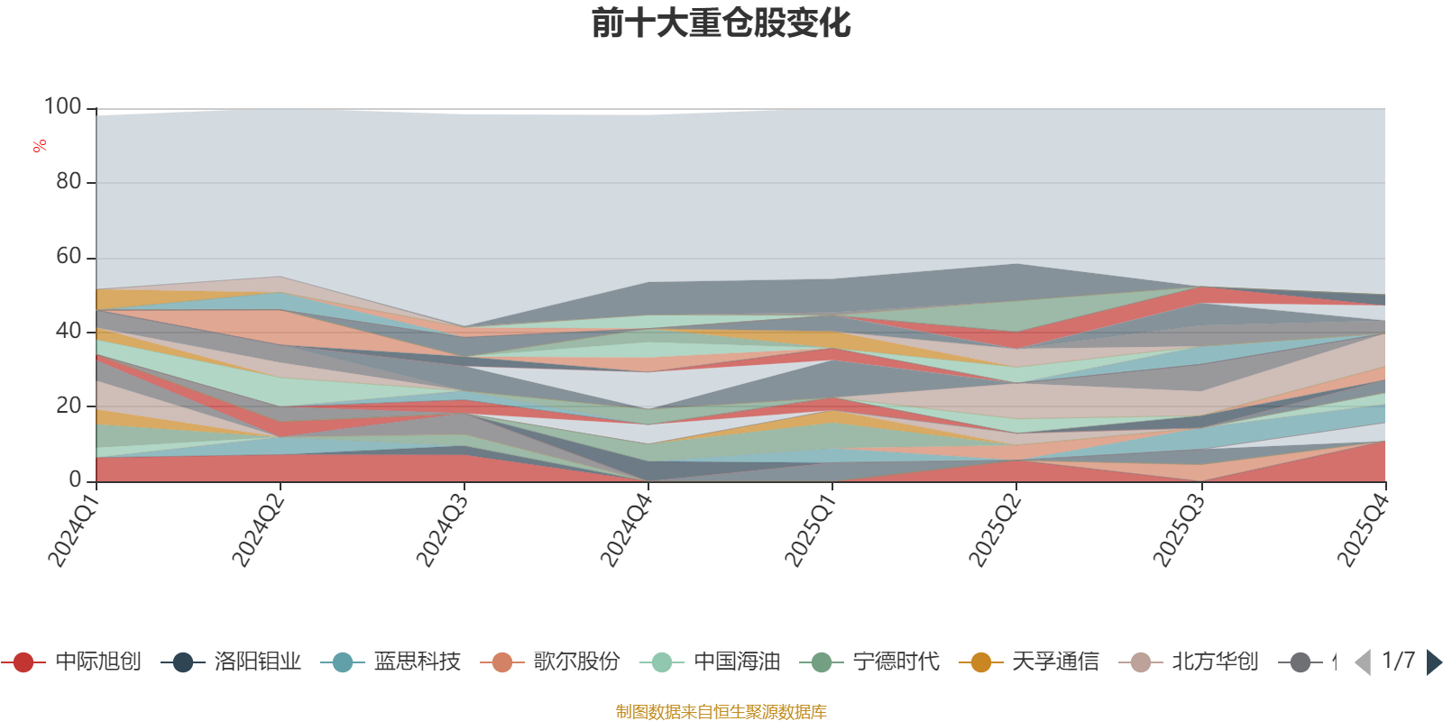 截至2025年四季度末,基金十大重仓股分别是中际旭创、新易盛、生益科技、长芯博创、麦格米特、长川科技、源杰科技、盛屯矿业、永鼎股份、中矿资源。