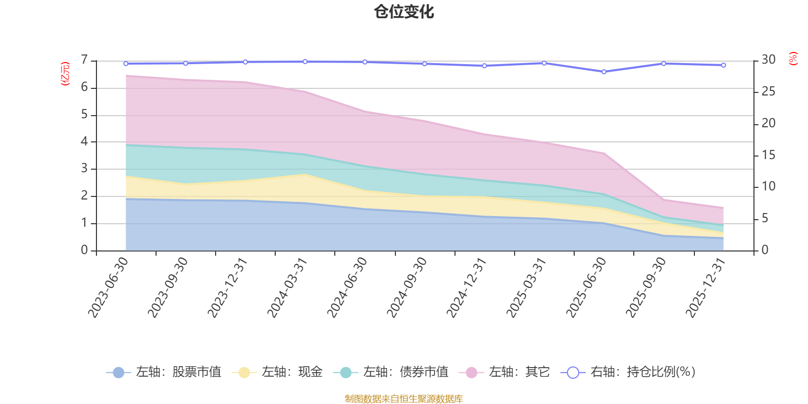 据定期报告数据统计,成立以来平均股票仓位为29.44%,同类平均为19.2%。2024年一季度末基金达到29.85%的最高仓位,2025年上半年末最低,为28.24%。