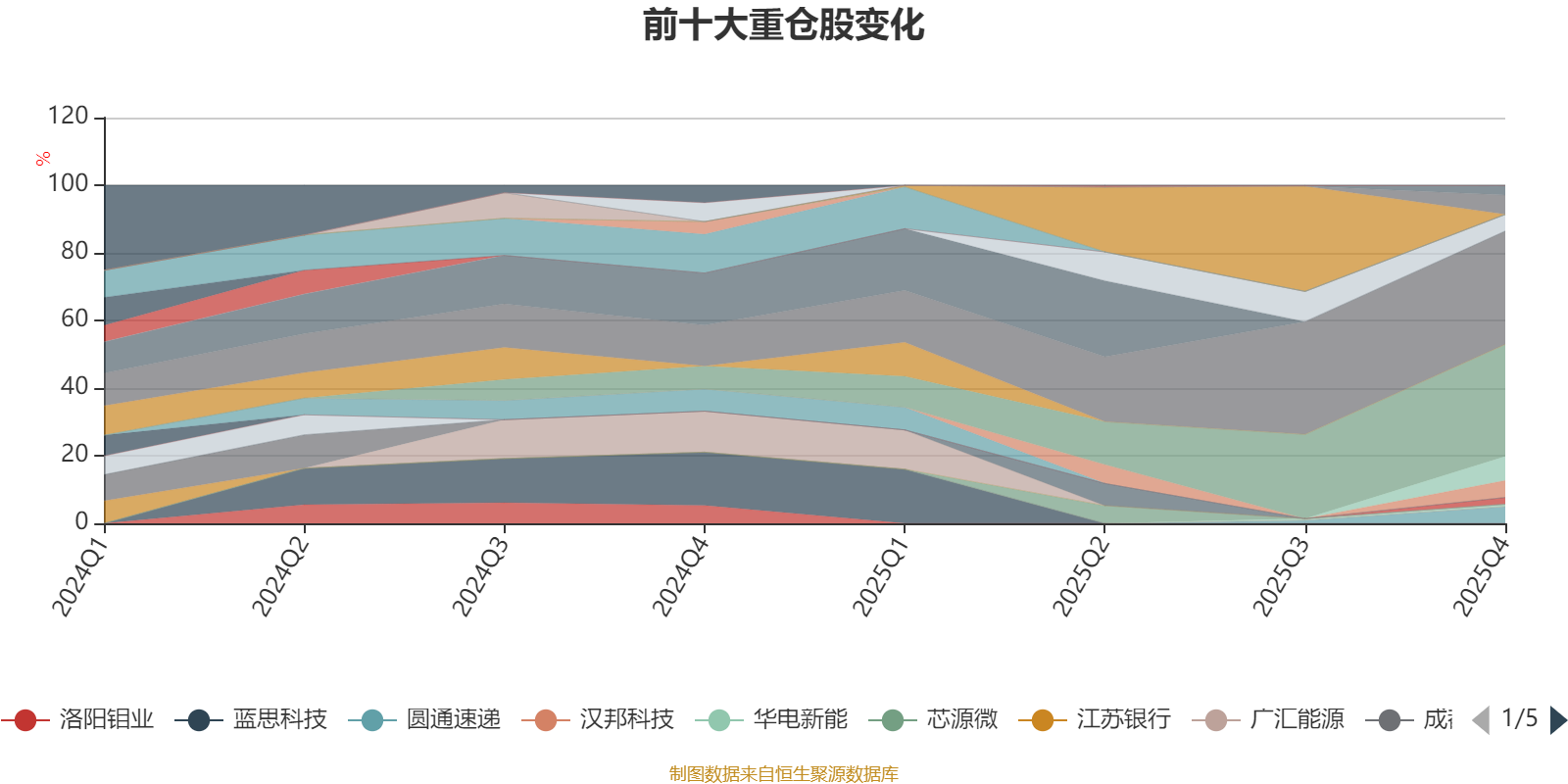 该基金持股集中度较高,近2年前十大重仓股集中度长期超过60%。截至2025年四季度末,基金十大重仓股分别是紫金矿业、藏格矿业、江西铜业、嘉友国际、山东威达、圆通速递、茂莱光学、华海清科、新相微、华电新能。