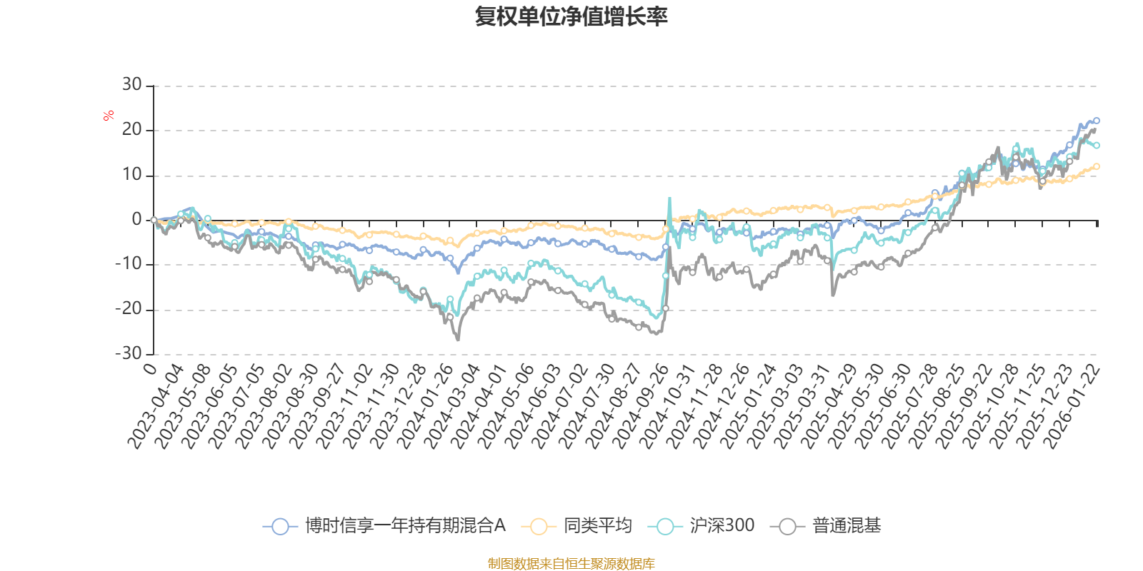 截至1月22日,博时信享一年持有期混合A近三个月复权单位净值增长率为8.76%,位于同类可比基金22/629;近半年复权单位净值增长率为18.41%,位于同类可比基金22/629;近一年复权单位净值增长率为25.84%,位于同类可比基金26/626。