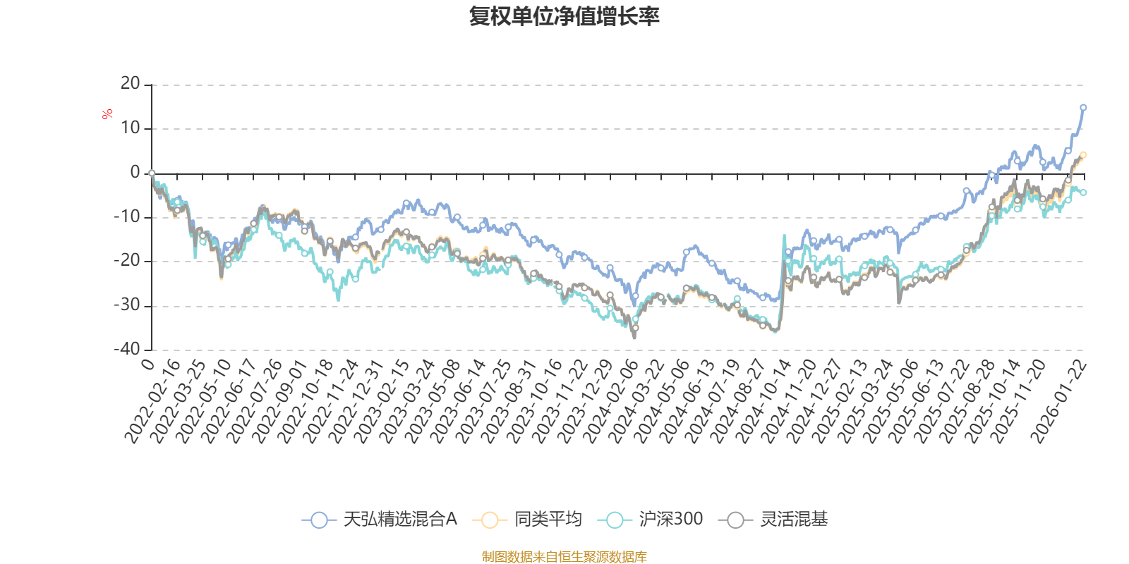 截至1月22日,天弘精选混合A近三个月复权单位净值增长率为12.81%,位于同类可比基金404/1286;近半年复权单位净值增长率为19.59%,位于同类可比基金689/1286;近一年复权单位净值增长率为35.39%,位于同类可比基金590/1286;近三年复权单位净值增长率为26.25%,位于同类可比基金437/1286。