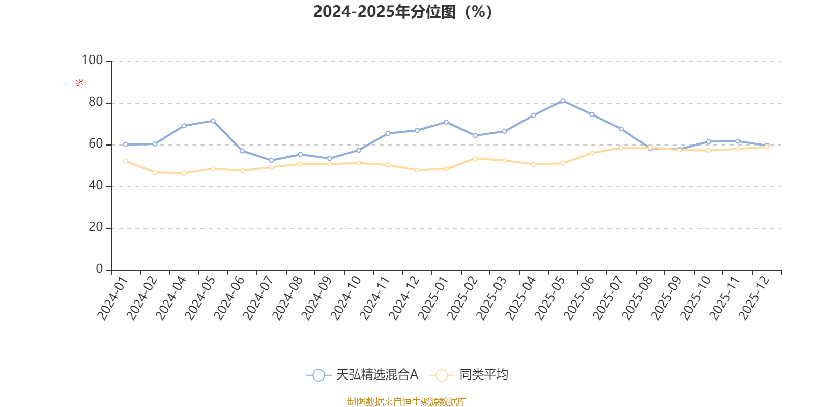 通过所选区间该基金净值增长率分位图,可以观察该基金与同类基金业绩比较情况。图为坐标原点到区间内某时点的净值增长率在同类基金中的分位数。