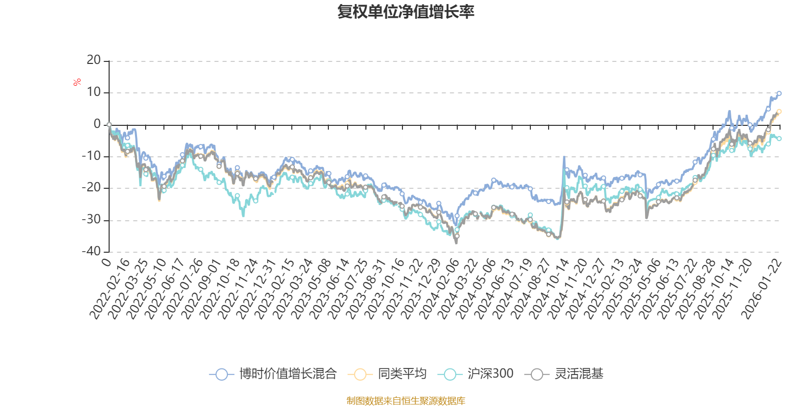 截至1月22日,博时价值增长混合近三个月复权单位净值增长率为11.08%,位于同类可比基金505/1286;近半年复权单位净值增长率为24.46%,位于同类可比基金556/1286;近一年复权单位净值增长率为32.17%,位于同类可比基金652/1286;近三年复权单位净值增长率为24.93%,位于同类可比基金462/1286。