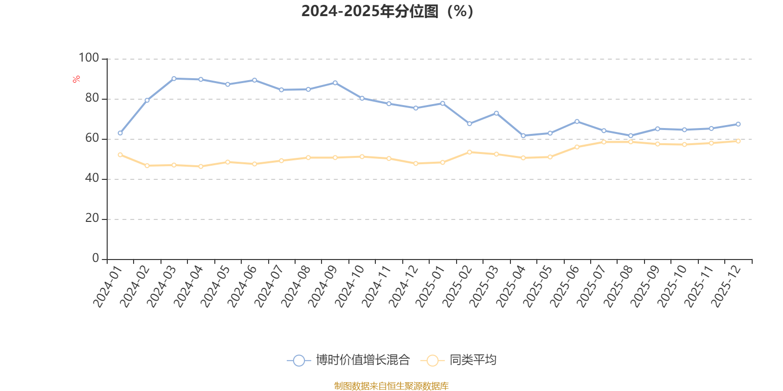 通过所选区间该基金净值增长率分位图,可以观察该基金与同类基金业绩比较情况。图为坐标原点到区间内某时点的净值增长率在同类基金中的分位数。