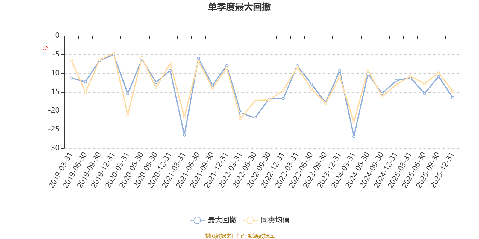 通过所选区间该基金净值增长率分位图,可以观察该基金与同类基金业绩比较情况。图为坐标原点到区间内某时点的净值增长率在同类基金中的分位数。