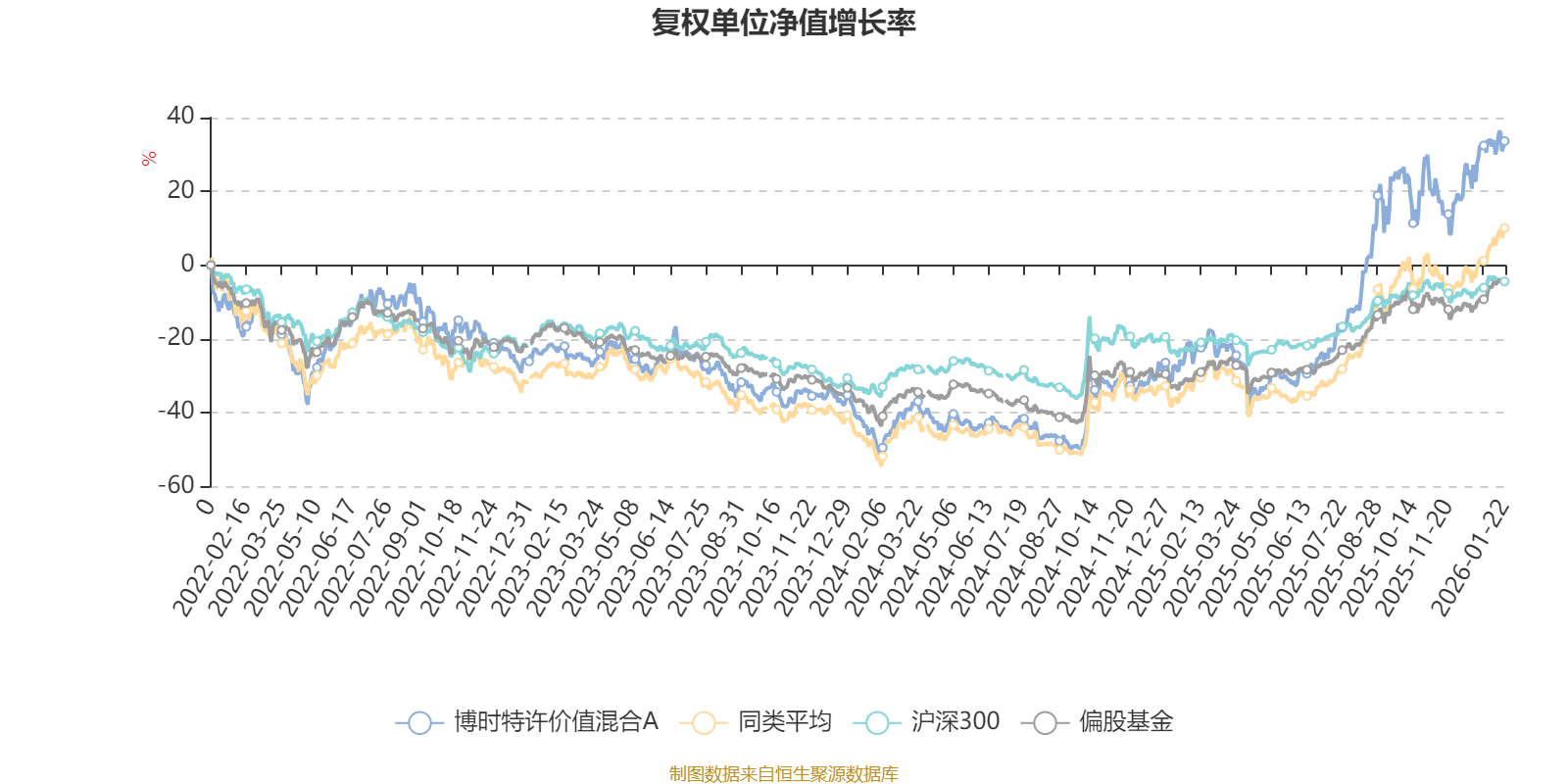 截至1月22日,博时特许价值混合A近三个月复权单位净值增长率为11.44%,位于同类可比基金156/229;近半年复权单位净值增长率为60.92%,位于同类可比基金88/229;近一年复权单位净值增长率为68.95%,位于同类可比基金81/222;近三年复权单位净值增长率为72.18%,位于同类可比基金56/165。
