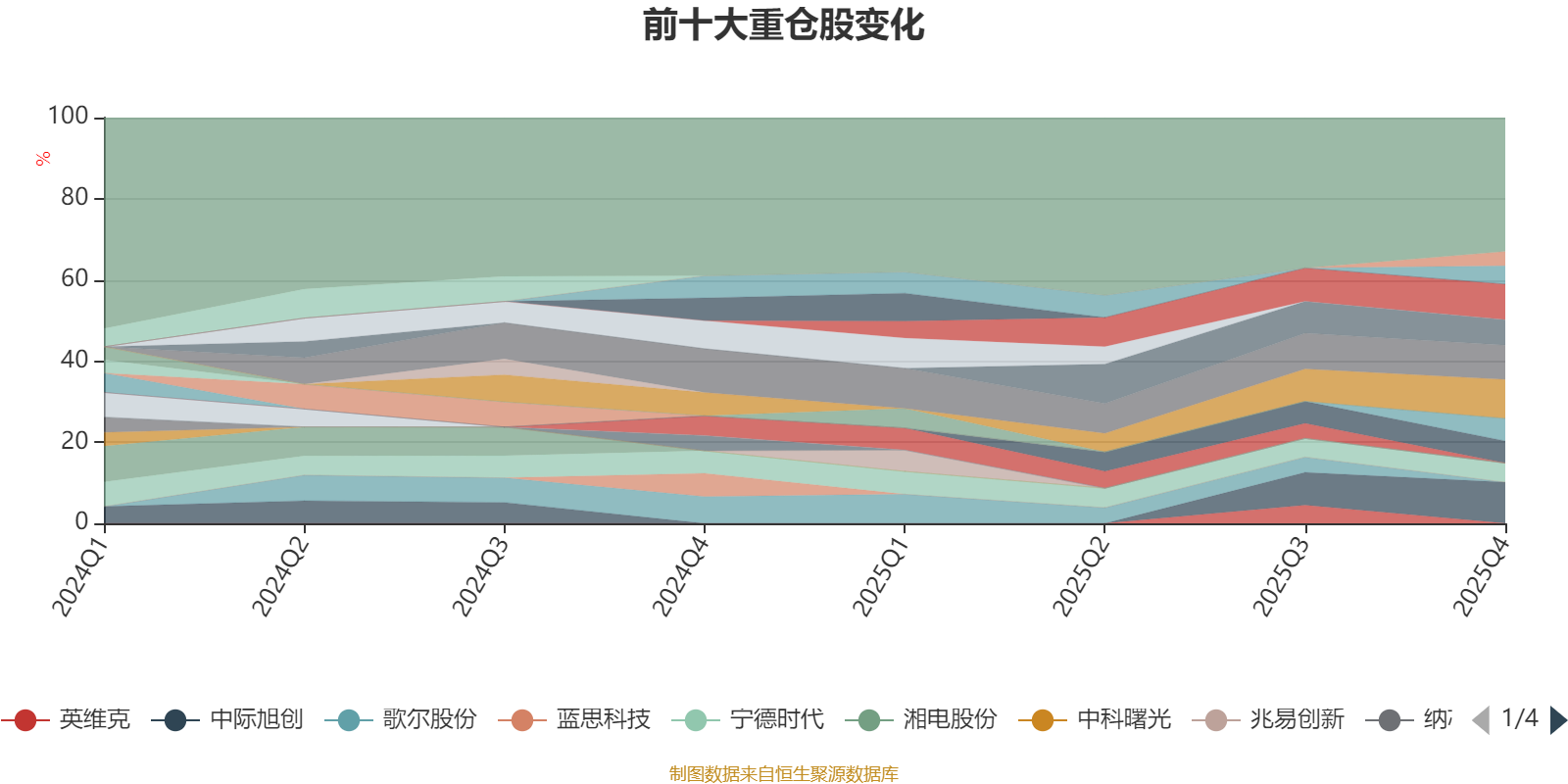 截至2025年四季度末,基金十大重仓股分别是中际旭创、新易盛、东山精密、寒武纪、胜宏科技、香农芯创、震裕科技、宁德时代、太辰光、新泉股份。