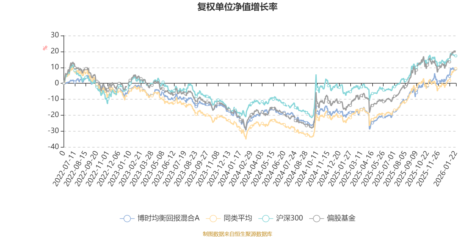 截至1月22日,博时均衡回报混合A近三个月复权单位净值增长率为10.85%,位于同类可比基金290/689;近半年复权单位净值增长率为24.14%,位于同类可比基金342/689;近一年复权单位净值增长率为33.71%,位于同类可比基金377/673;近三年复权单位净值增长率为11.60%,位于同类可比基金218/396。