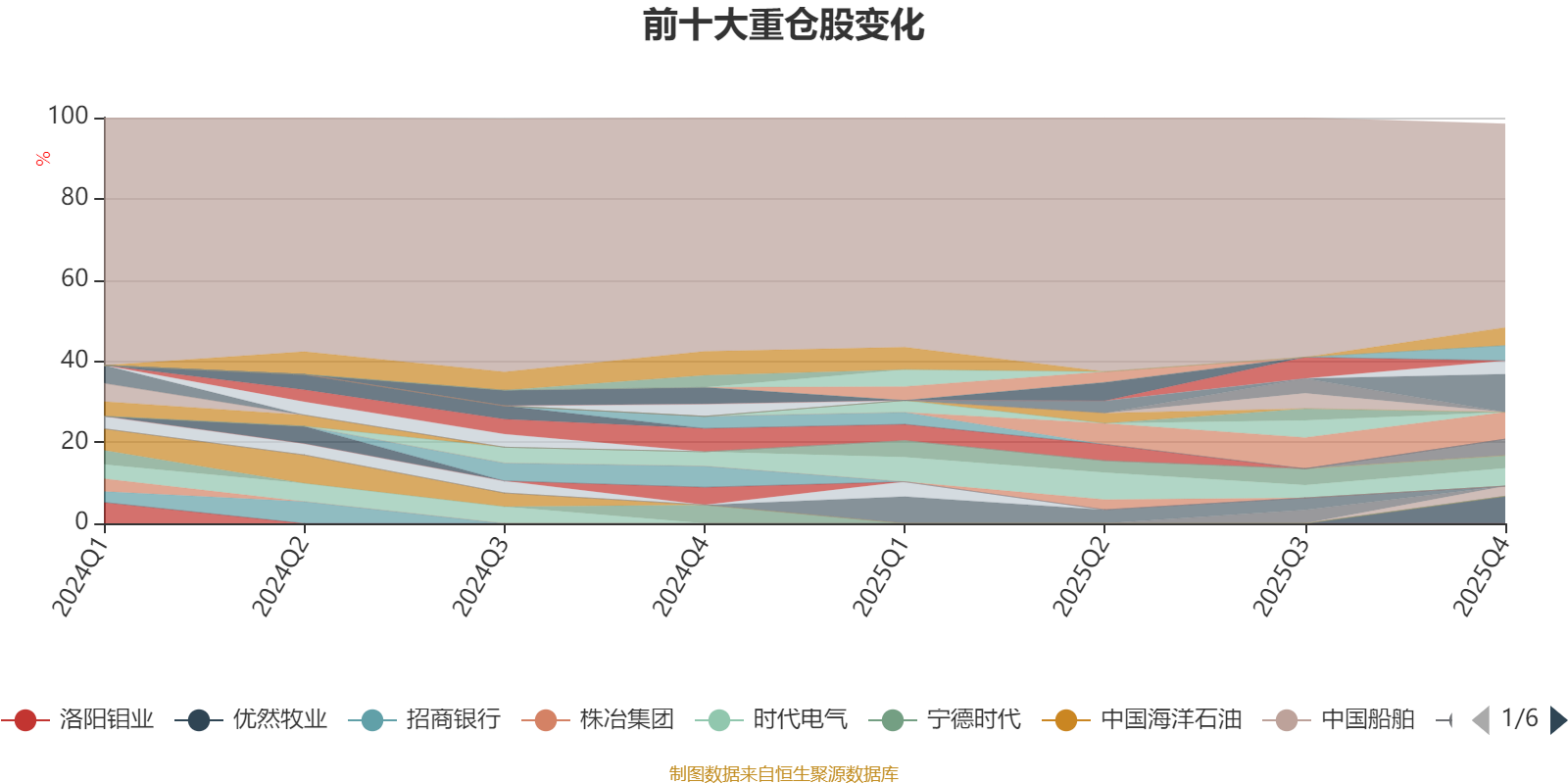 截至2025年四季度末,基金十大重仓股分别是中国平安、优然牧业、*ST松发、重庆农村商业银行、紫金矿业、海容冷链、中国太保、中集安瑞科、腾讯控股、中国船舶。