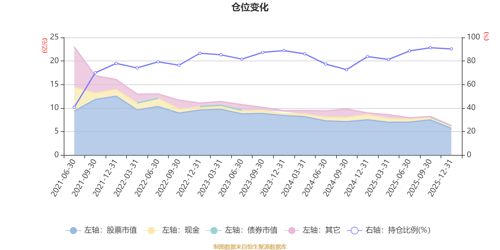 据定期报告数据统计,近三年平均股票仓位为84.55%,同类平均为86.12%。2025年三季度末基金达到91.31%的最高仓位,2021年上半年末最低,为40.7%。