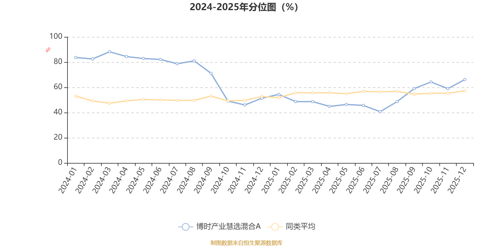 通过所选区间该基金净值增长率分位图,可以观察该基金与同类基金业绩比较情况。图为坐标原点到区间内某时点的净值增长率在同类基金中的分位数。