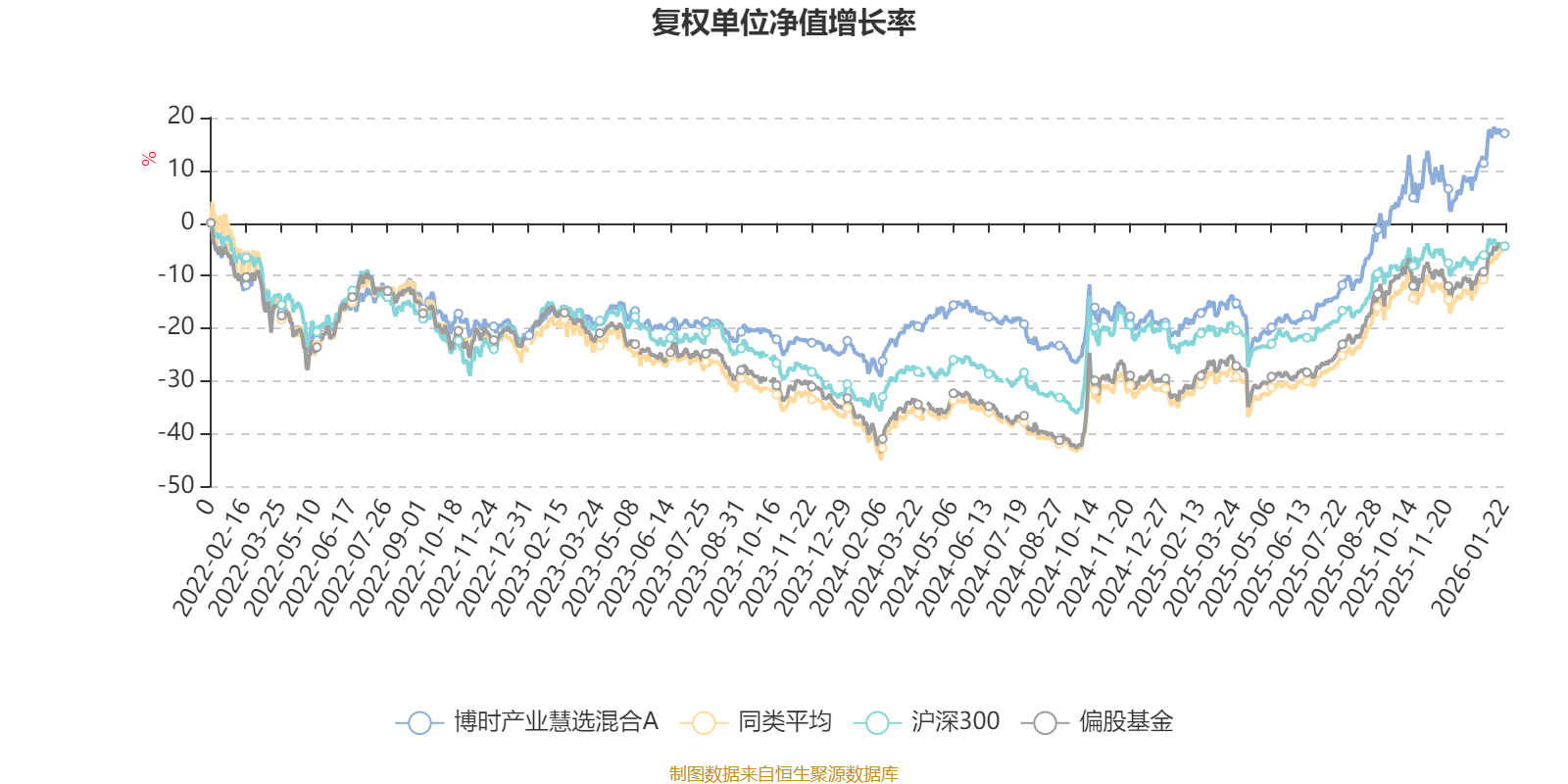截至1月22日,博时产业慧选混合A近三个月复权单位净值增长率为9.68%,位于同类可比基金130/265;近半年复权单位净值增长率为32.60%,位于同类可比基金79/265;近一年复权单位净值增长率为44.01%,位于同类可比基金103/265;近三年复权单位净值增长率为41.37%,位于同类可比基金53/256。