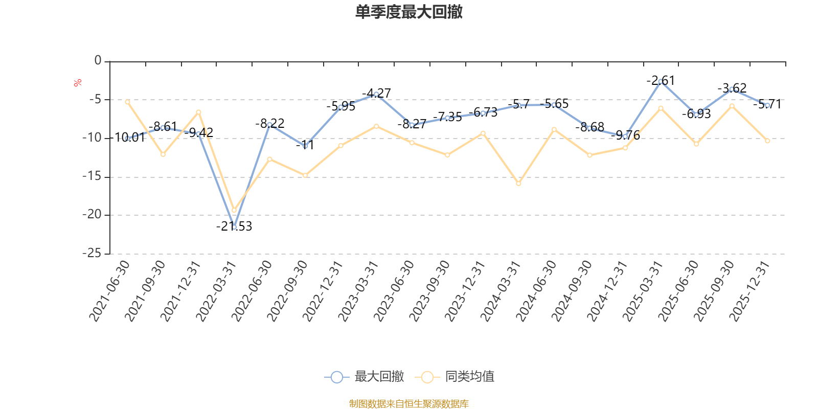 截至1月22日,基金近三年最大回撤为19.41%,同类可比基金排名20/378。单季度最大回撤出现在2022年一季度,为21.53%。