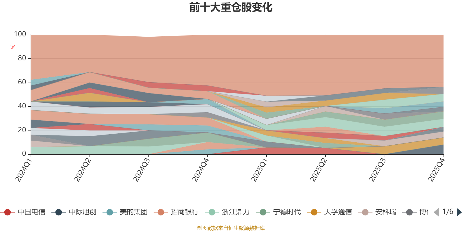 截至2025年四季度末,基金十大重仓股分别是中际旭创、新易盛、寒武纪、东山精密、天孚通信、源杰科技、震裕科技、生益电子、思泉新材、德明利。