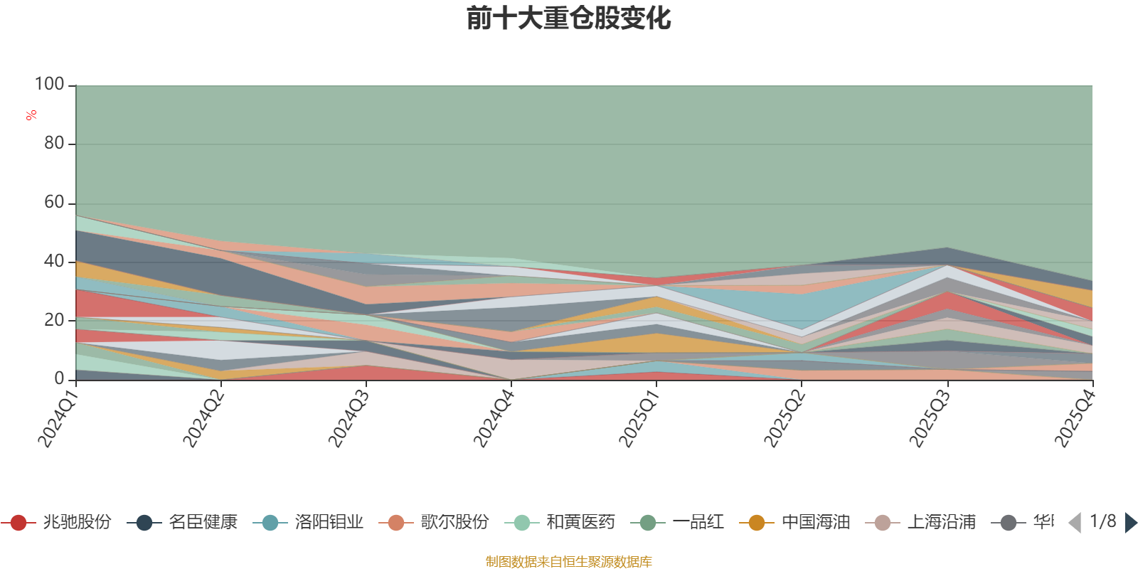 截至2025年四季度末,基金十大重仓股分别是华懋科技、伊戈尔、华友钴业、天赐材料、同花顺、华明装备、运机集团、鼎胜新材、新易盛、常宝股份。