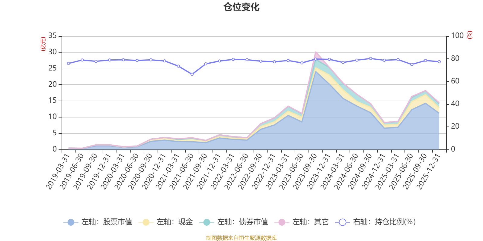据定期报告数据统计,近三年平均股票仓位为78.28%,同类平均为72.57%。2024年三季度末基金达到80.31%的最高仓位,2021年上半年末最低,为66.39%。