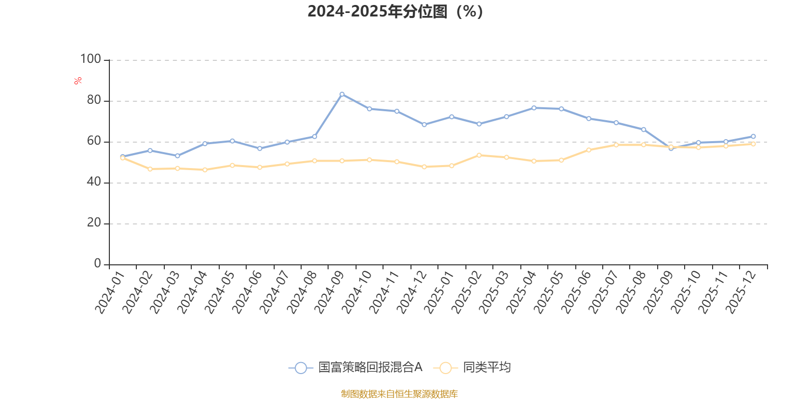 通过所选区间该基金净值增长率分位图,可以观察该基金与同类基金业绩比较情况。图为坐标原点到区间内某时点的净值增长率在同类基金中的分位数。
