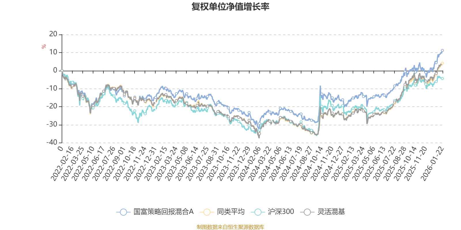 截至1月22日,国富策略回报混合A近三个月复权单位净值增长率为10.20%,位于同类可比基金557/1286;近半年复权单位净值增长率为21.48%,位于同类可比基金648/1286;近一年复权单位净值增长率为34.09%,位于同类可比基金614/1286;近三年复权单位净值增长率为22.75%,位于同类可比基金503/1286。