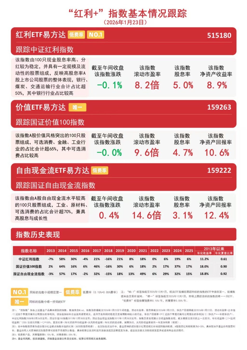 “红利+”指数震荡分化,关注价值ETF易方达(159263)、自由现金流ETF易方达(159222)等产品投资机会