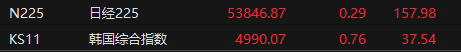 1月23日,日韩股市收盘齐涨。日经225指数收盘上涨0.29%,报53846.87点;韩国综合指数涨0.76%,报4990.07点。