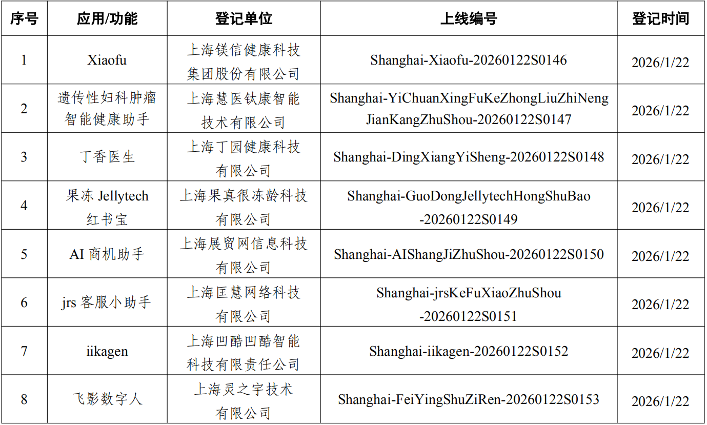 上海市新增8款已完成登记的生成式人工智能服务