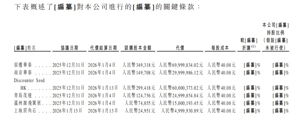 记者注意到,上述认购方背后分别为华泰证券、江苏凤凰出版传媒股份有限公司、启承资本、丸美生物、源飞宠物及孙来春。孙来春系护肤品牌林清轩创始人,而林清轩已于2025年12月30日成功登陆港股。