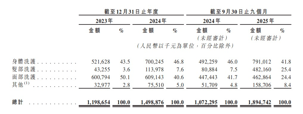 花物堂表示,从早期推出的美白系列身体乳及冰激凌香氛系列磨砂膏等身体洗护产品,到后续推出的米酵氨基酸洁面慕斯等面部洗护产品,以及鲜花花萃系列洗发水等发部洗护产品,公司持续证明了自身精准洞察市场需求的能力,并成功打造多款旗舰产品。截至2025年9月30日,公司打造的产品组合达到509个主要SKU(最小存货单位)。