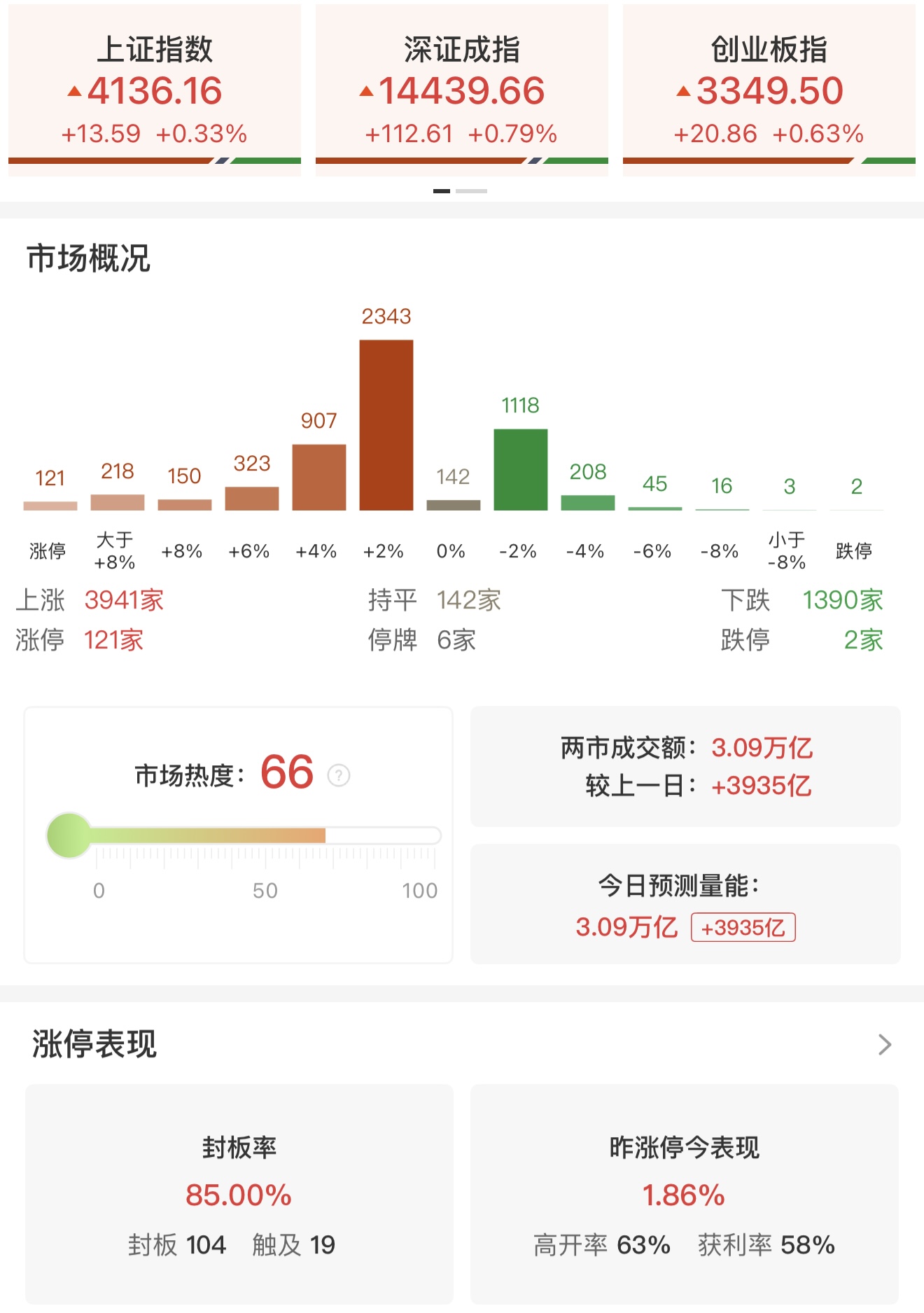 收评:深成指放量涨0.79% 全市场超百股涨停