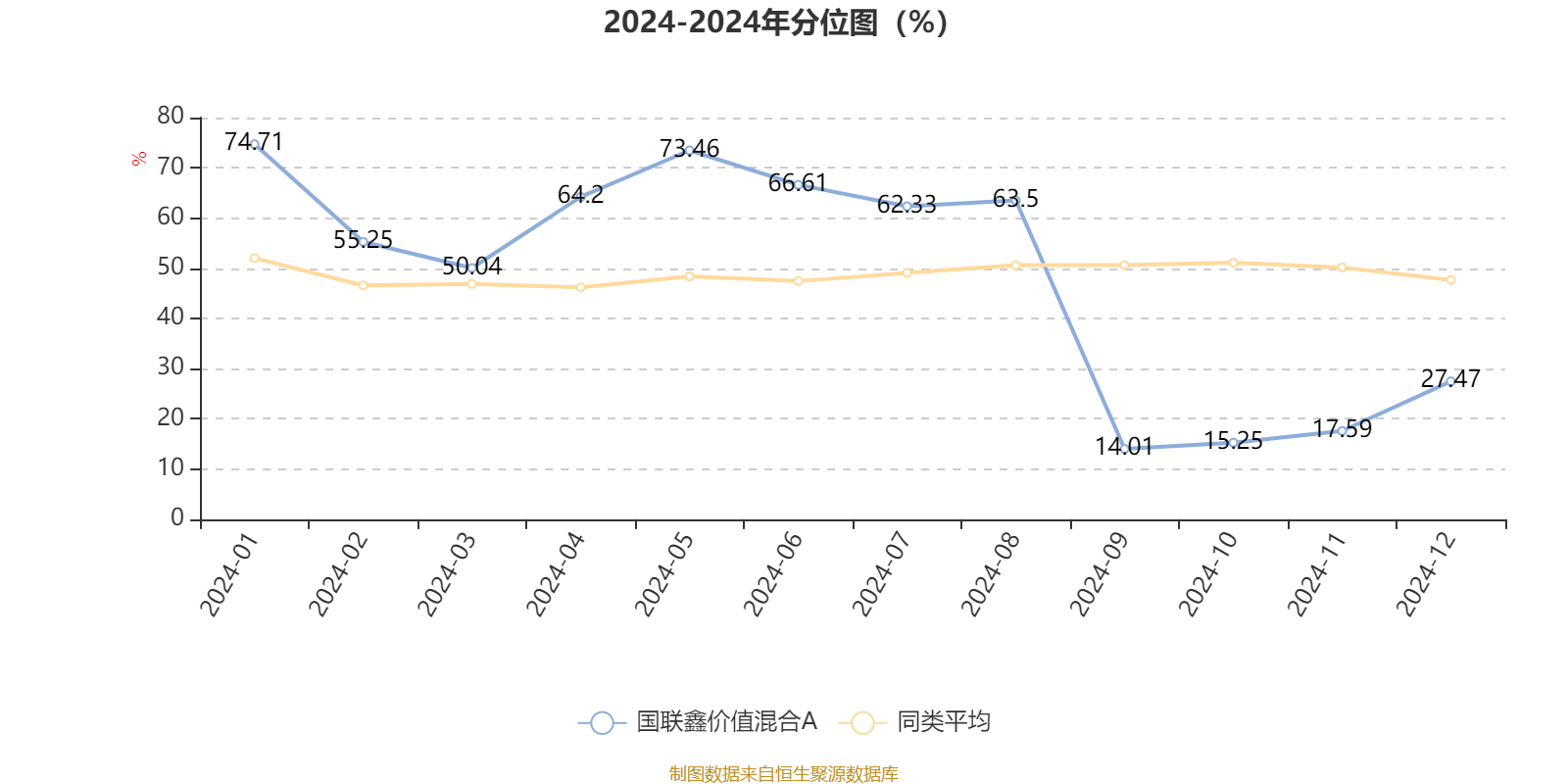 通过所选区间该基金净值增长率分位图,可以观察该基金与同类基金业绩比较情况。图为坐标原点到区间内某时点的净值增长率在同类基金中的分位数。