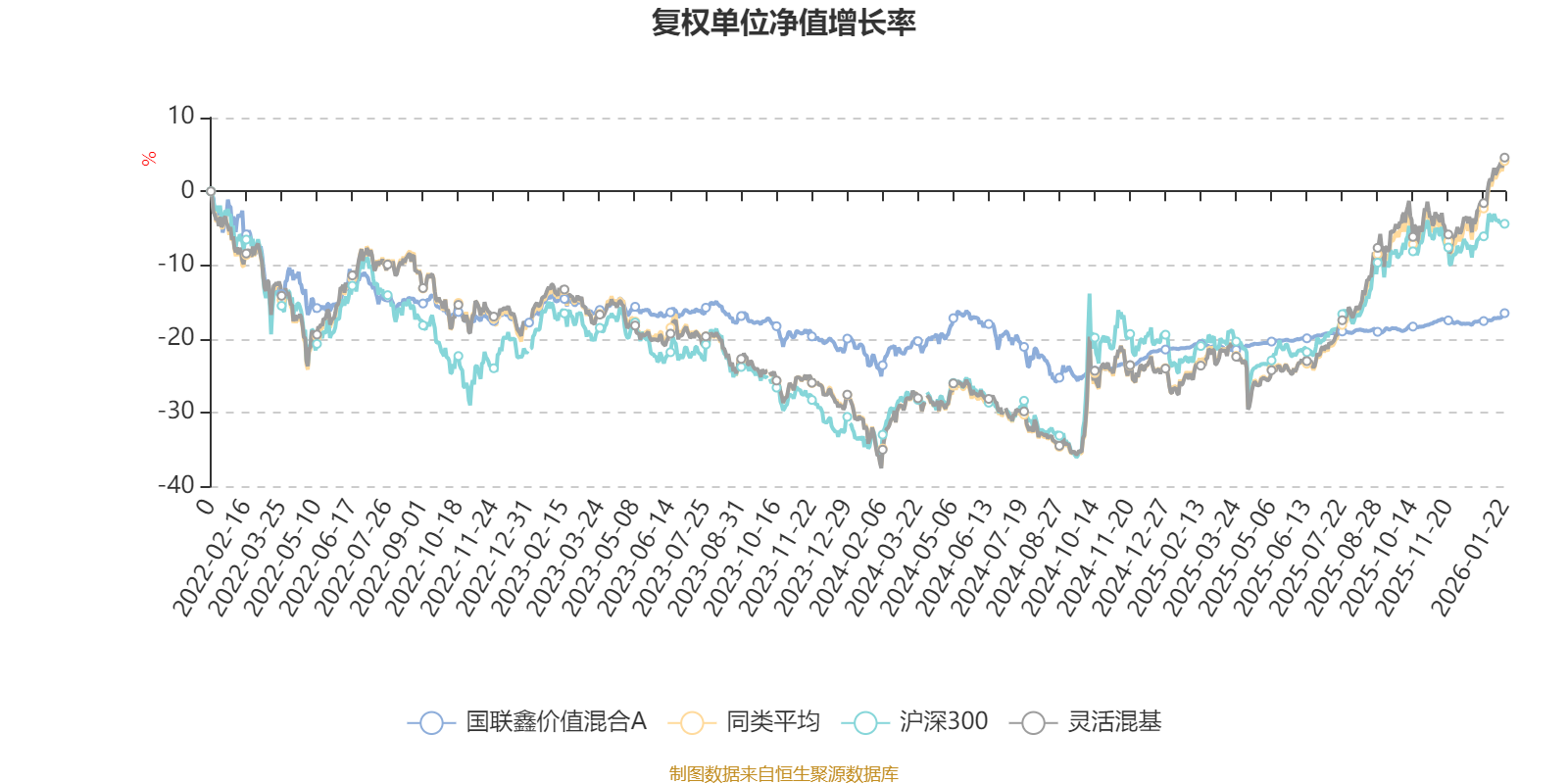截至1月22日,国联鑫价值混合A近三个月复权单位净值增长率为2.26%,位于同类可比基金1026/1286;近半年复权单位净值增长率为3.06%,位于同类可比基金1130/1286;近一年复权单位净值增长率为5.94%,位于同类可比基金1181/1286;近三年复权单位净值增长率为-2.42%,位于同类可比基金1049/1286。