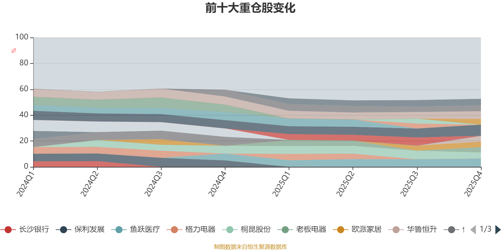 该基金持股集中度较高。截至2025年四季度末,基金十大重仓股分别是万华化学、鱼跃医疗、索菲亚、三一重工、桐昆股份、晨光股份、华鲁恒升、云铝股份、欧派家居、老板电器。