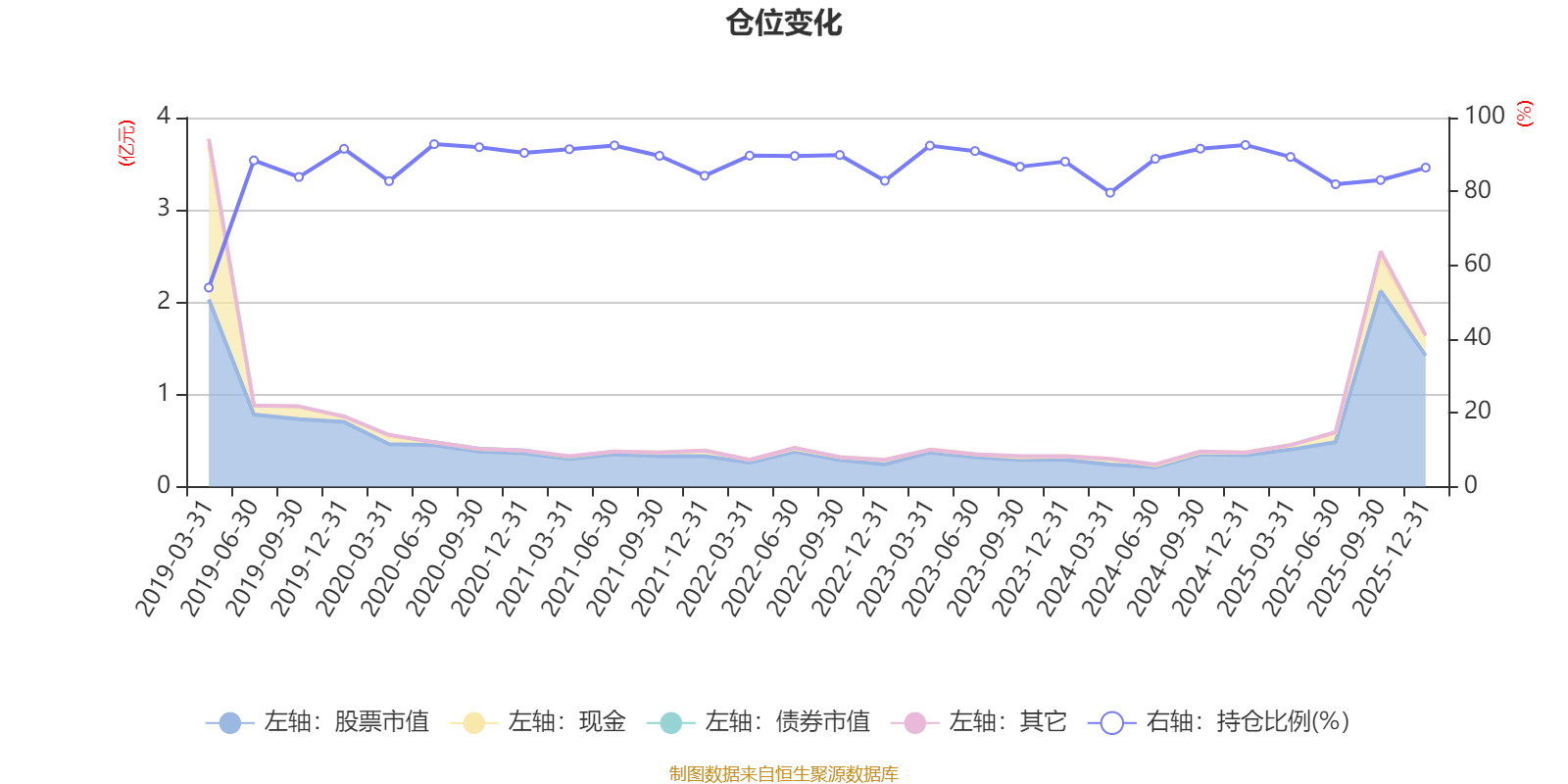 据定期报告数据统计,近三年平均股票仓位为87.63%,同类平均为72.57%。2020年上半年末基金达到92.8%的最高仓位,2019年一季度末最低,为53.92%。