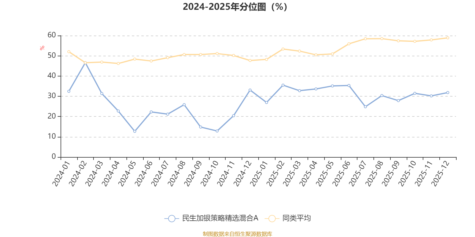通过所选区间该基金净值增长率分位图,可以观察该基金与同类基金业绩比较情况。图为坐标原点到区间内某时点的净值增长率在同类基金中的分位数。