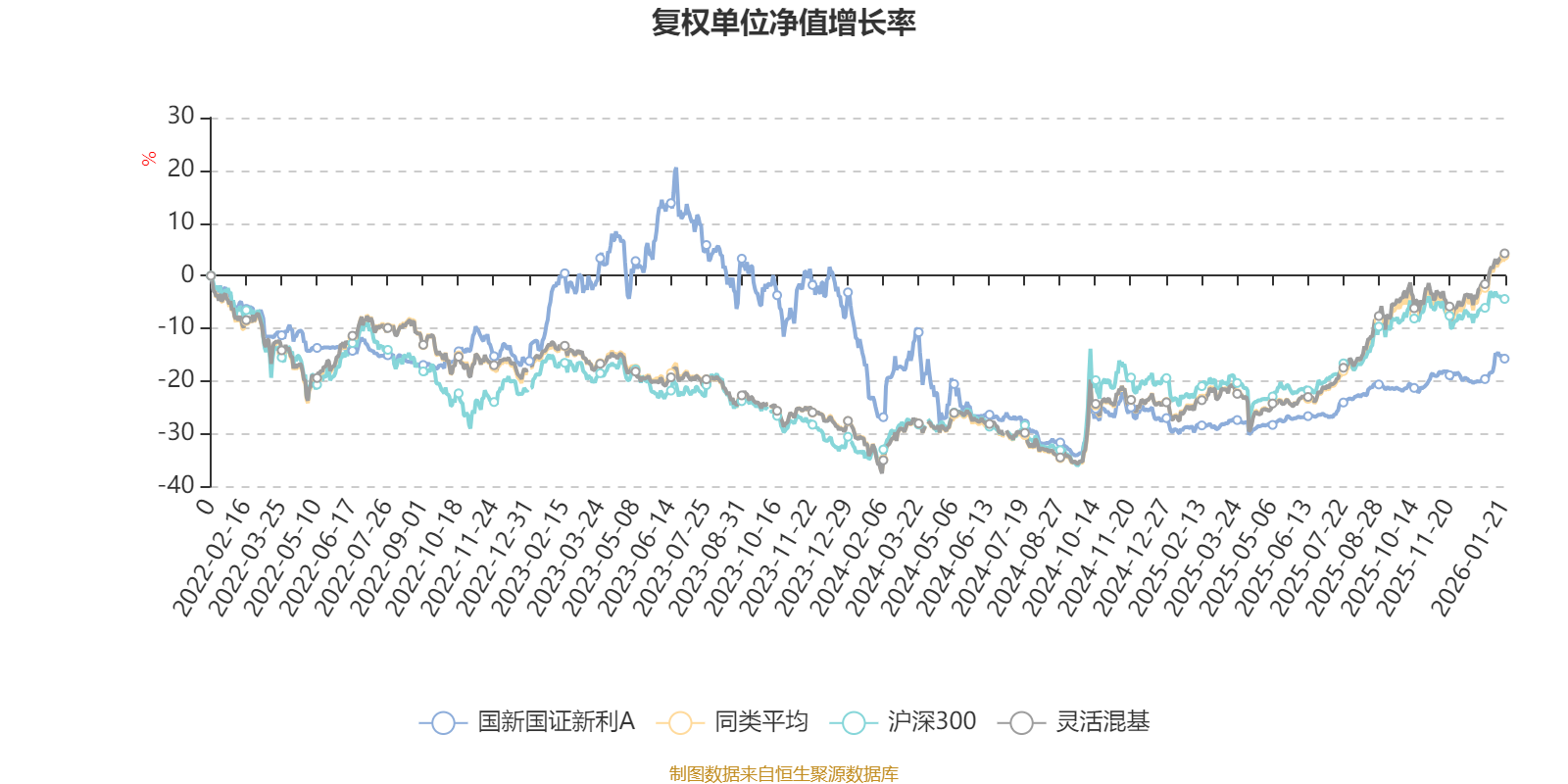 截至1月21日,国新国证新利A近三个月复权单位净值增长率为6.80%,位于同类可比基金738/1286;近半年复权单位净值增长率为10.69%,位于同类可比基金926/1286;近一年复权单位净值增长率为18.16%,位于同类可比基金949/1286;近三年复权单位净值增长率为-8.07%,位于同类可比基金1114/1286。