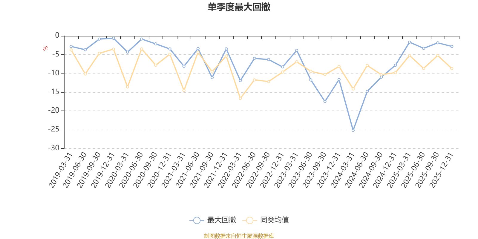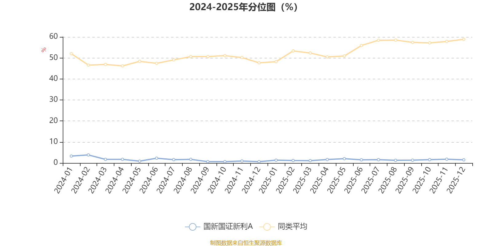 通过所选区间该基金净值增长率分位图,可以观察该基金与同类基金业绩比较情况。图为坐标原点到区间内某时点的净值增长率在同类基金中的分位数。