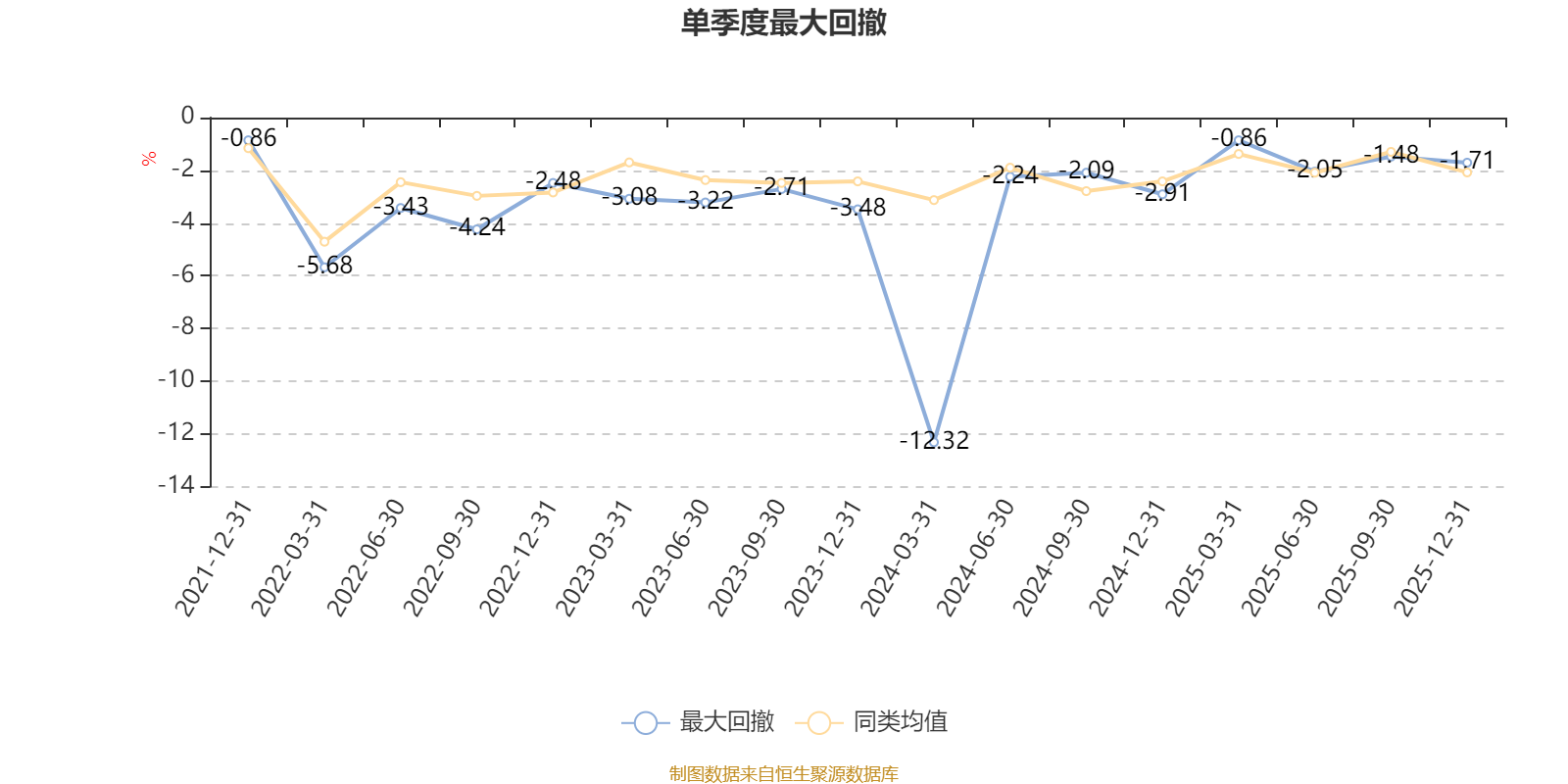 截至1月21日,基金近三年最大回撤为17.4%,同类可比基金排名499/526。单季度最大回撤出现在2024年一季度,为12.32%。