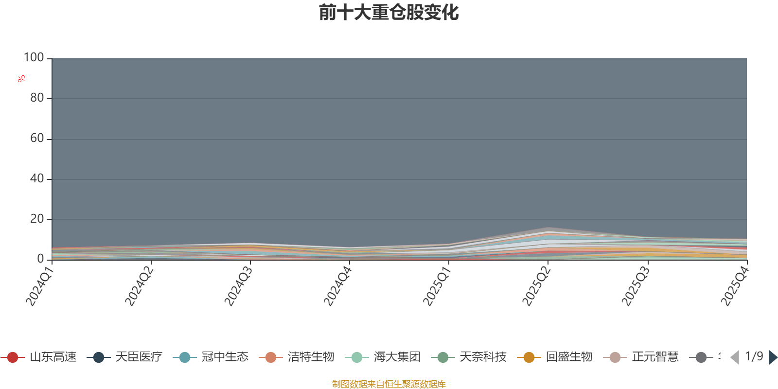 截至2025年四季度末,基金十大重仓股分别是天山铝业、华泰证券、鲁西化工、伊利股份、中国平安、东航物流、海大集团、长江电力、格力电器、宁波华翔。