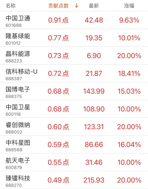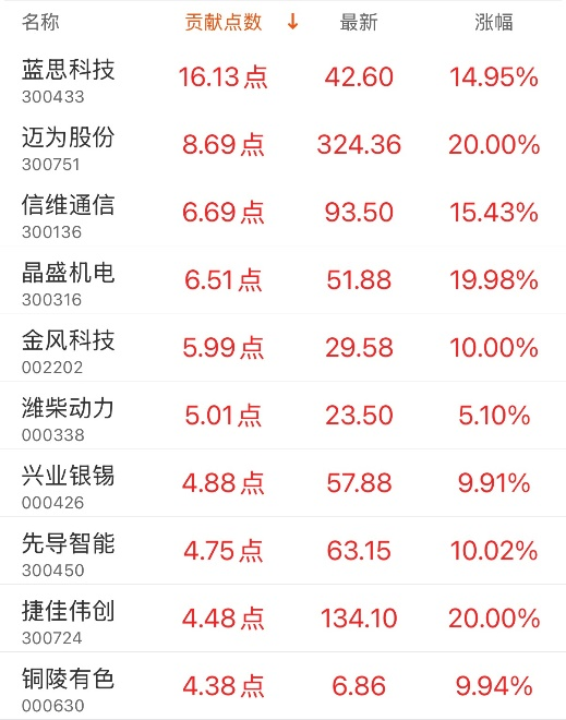 指数贡献榜:蓝思科技贡献16.13点