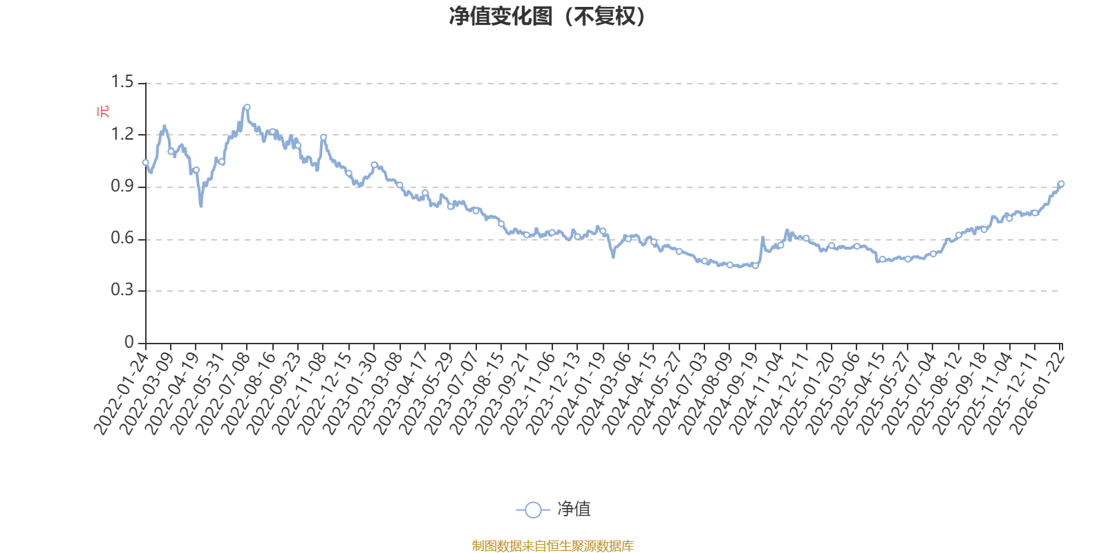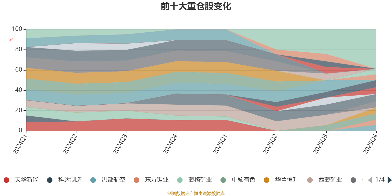该基金持股集中度较高,近2年前十大重仓股集中度长期超过60%。截至2025年四季度末,基金十大重仓股分别是雅化集团、航发动力、中国稀土、中稀有色、扬农化工、洪都航空、华鲁恒升、中航沈飞、华泰证券、东方钽业。