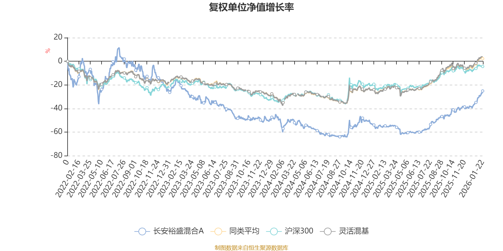 截至1月22日,长安裕盛混合A近三个月复权单位净值增长率为31.80%,位于同类可比基金25/1286;近半年复权单位净值增长率为60.71%,位于同类可比基金81/1286;近一年复权单位净值增长率为67.30%,位于同类可比基金140/1286;近三年复权单位净值增长率为-9.28%,位于同类可比基金1136/1286。