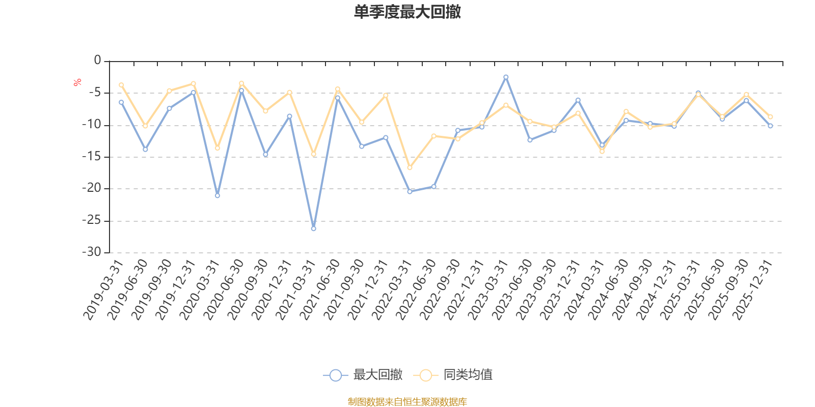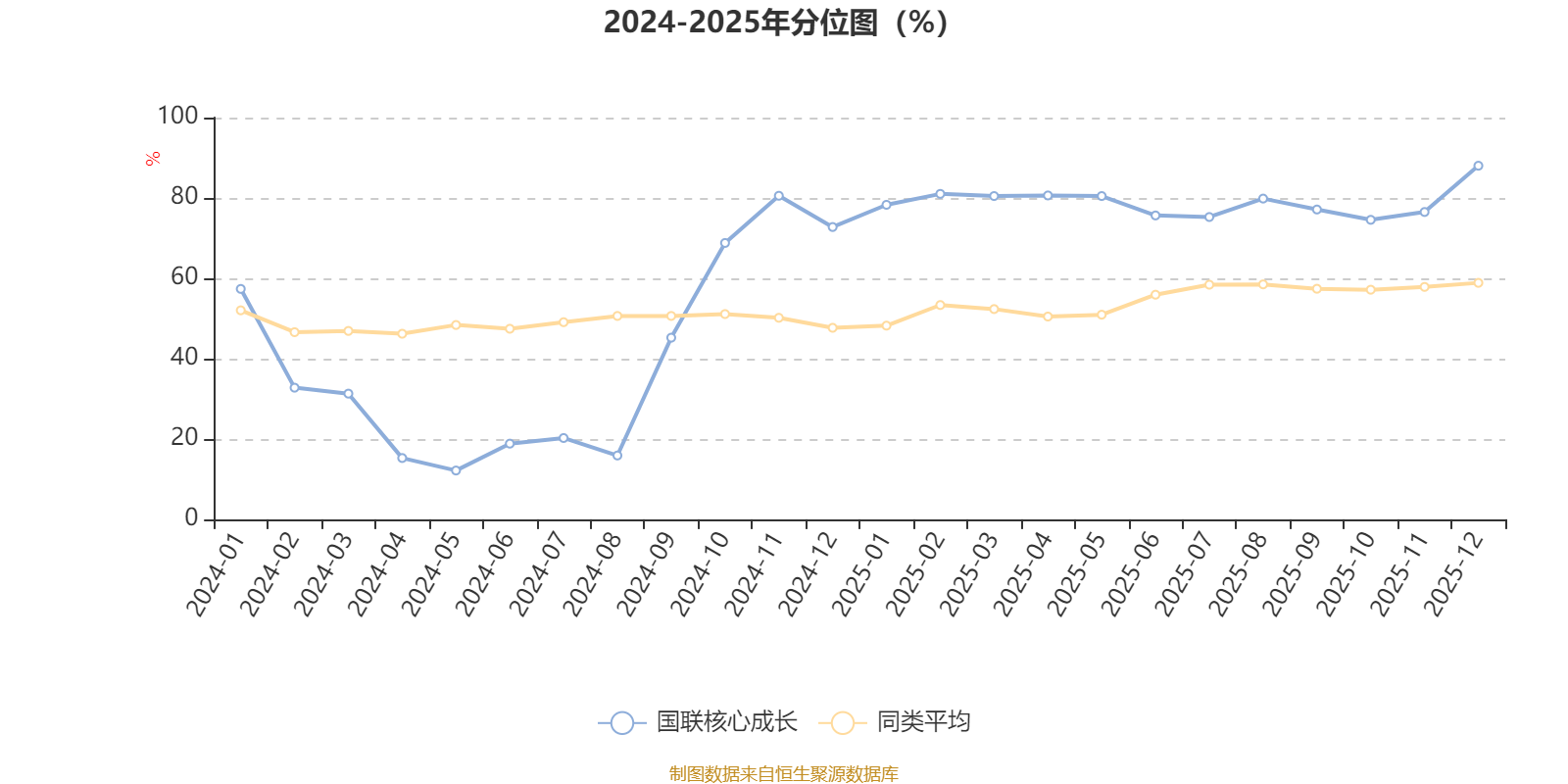 通过所选区间该基金净值增长率分位图,可以观察该基金与同类基金业绩比较情况。图为坐标原点到区间内某时点的净值增长率在同类基金中的分位数。
