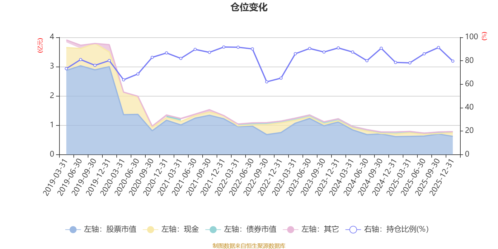据定期报告数据统计,近三年平均股票仓位为85.59%,同类平均为72.57%。2021年末基金达到91.74%的最高仓位,2022年三季度末最低,为62.05%。
