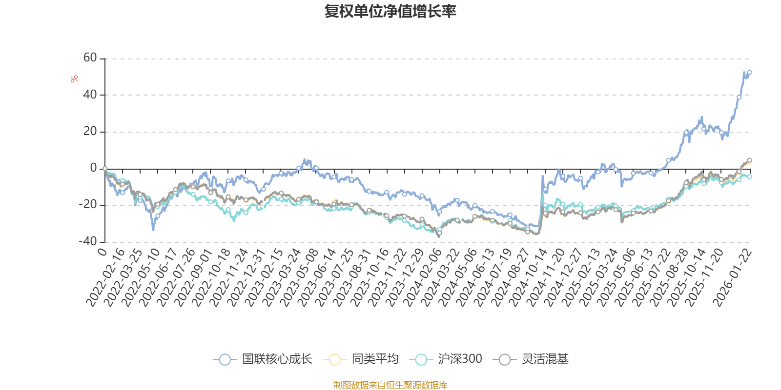 截至1月22日,国联核心成长近三个月复权单位净值增长率为26.27%,位于同类可比基金62/1286;近半年复权单位净值增长率为45.86%,位于同类可比基金193/1286;近一年复权单位净值增长率为59.11%,位于同类可比基金219/1286;近三年复权单位净值增长率为57.88%,位于同类可比基金135/1286。