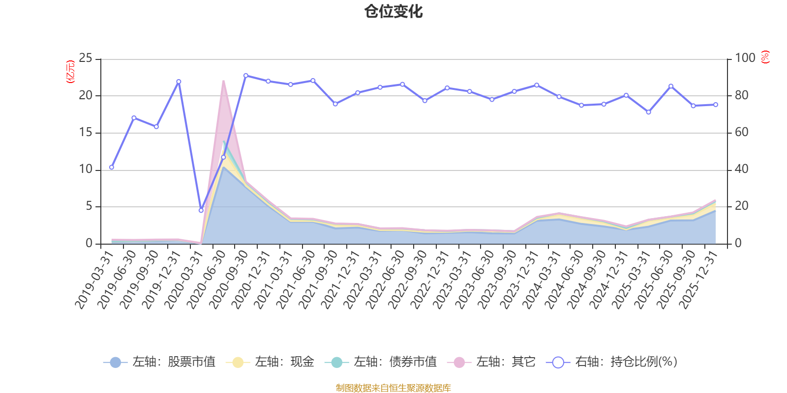 据定期报告数据统计,近三年平均股票仓位为78.82%,同类平均为72.57%。2020年三季度末基金达到91.03%的最高仓位,2020年一季度末最低,为18.12%。