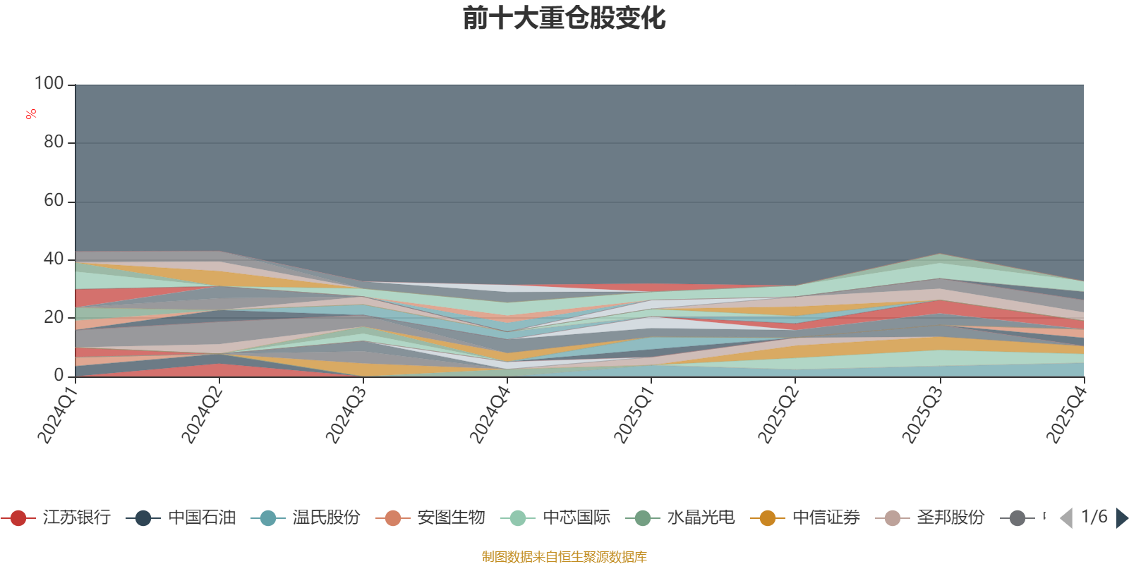 截至2025年四季度末,基金十大重仓股分别是温氏股份、苏州银行、宁德时代、中芯国际、南京银行、海光信息、航发动力、齐鲁银行、牧原股份、中信证券。
