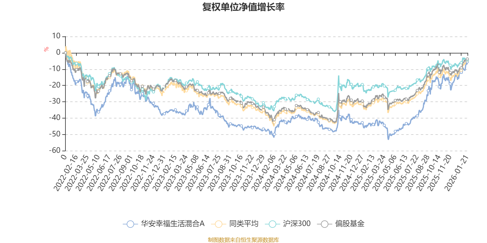 截至1月21日,华安幸福生活混合A近三个月复权单位净值增长率为16.30%,位于同类可比基金28/265;近半年复权单位净值增长率为53.70%,位于同类可比基金16/265;近一年复权单位净值增长率为65.98%,位于同类可比基金24/265;近三年复权单位净值增长率为45.37%,位于同类可比基金41/256。