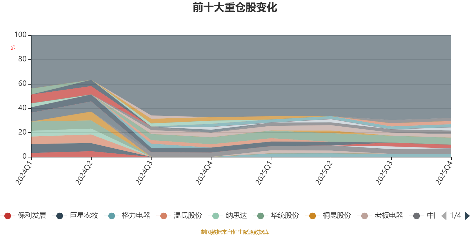 截至2025年四季度末,基金十大重仓股分别是招商银行、中国太保、中国巨石、万华化学、建设银行、顺丰控股、云铝股份、美的集团、格力电器、杭叉集团。