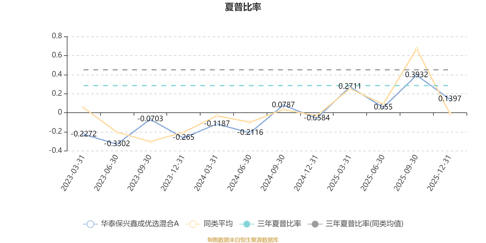 截至12月31日,基金近三年夏普比率为0.2845,位于同类可比基金265/383。